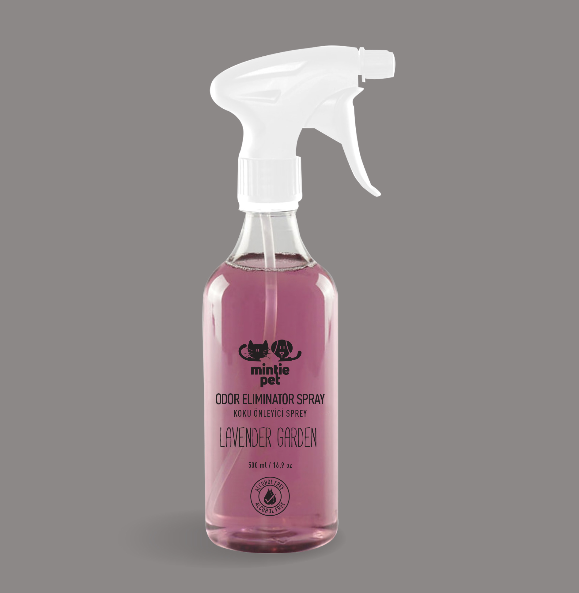 MintiePet™ Lavender Garden Odor Eleminator Spray is available in 500 ml spray bottles and has a pratical and durable spray head.